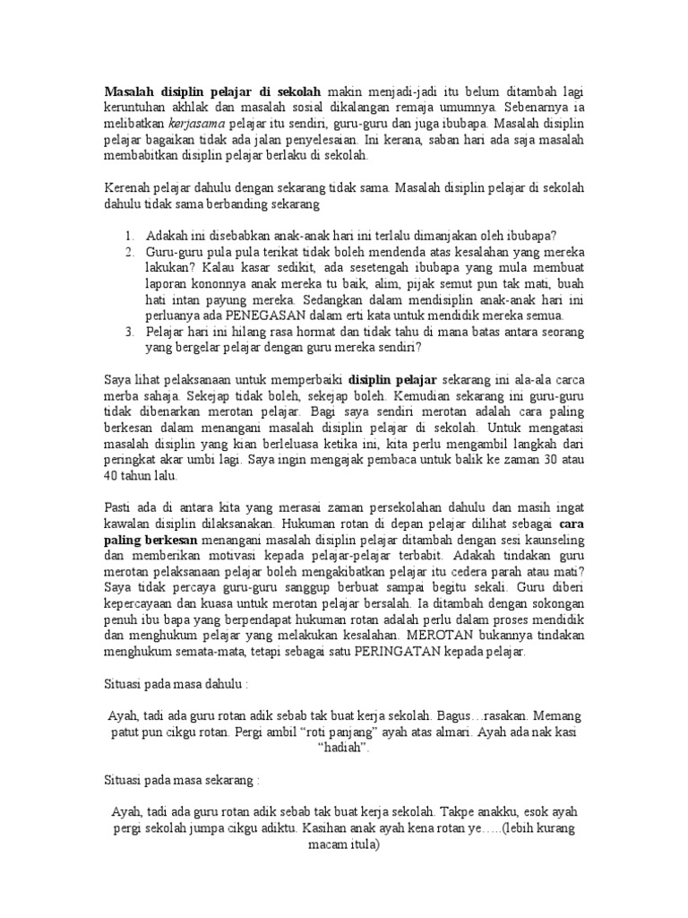 Related : Masalah Disiplin Pelajar Di Sekolah - · pihak kerajaan= mengadakan kursus khas guru menangani masalah disiplin, guru tidak menghukum pelajar mengikut emosi, tidak berlaku kes penderaan dan..